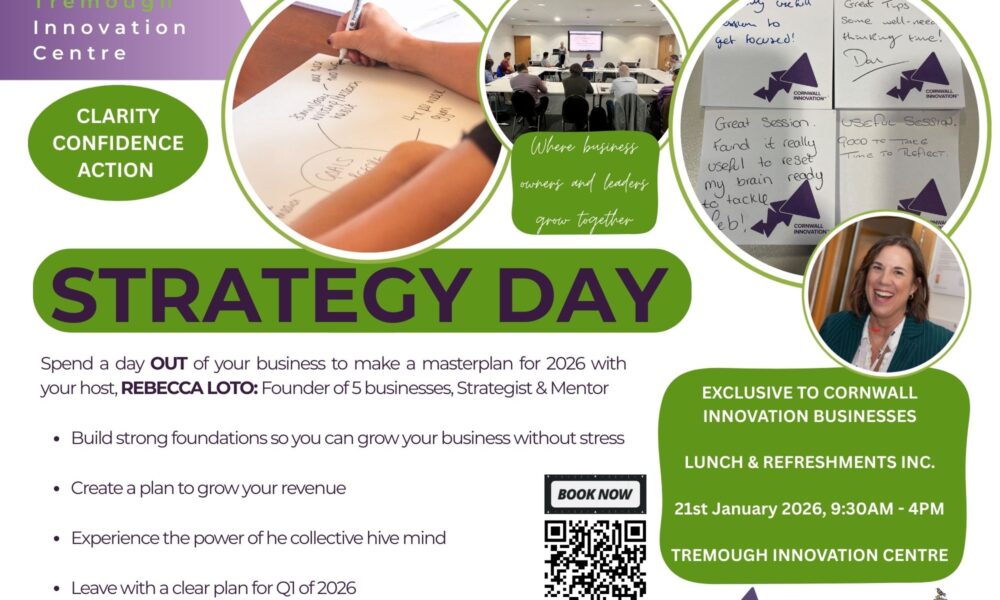 N.B. This is a complementary event exclusive to Cornwall Innovation Centre clients and for that reason, please note final numbers will go to the events team to organise catering by Monday 19th January at 10am.