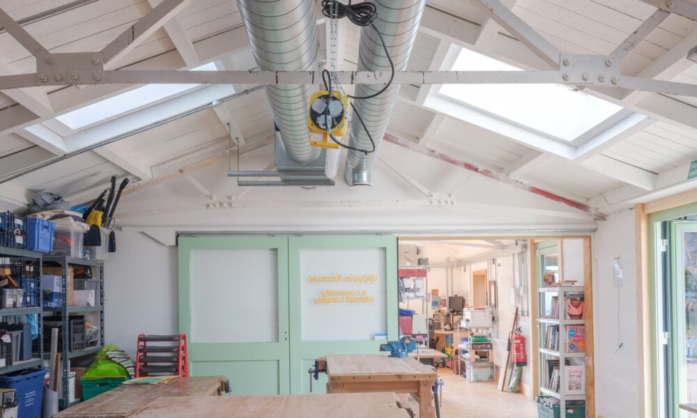 Frances Crow, Director of Crow Architecture, said: “This has been a rare chance to breathe new life into a WWII building that once supported women during the original ‘make do and mend’ era. Upcycle Kernow’s ethos of reusing materials and up-skilling the community guided every design decision, from retaining the steel trusses to repurposing the front door as a sliding partition. Their desire for a warm, welcoming, credible space aligns with our belief that demolition is a last resort. The result is a building that feels both rooted in its history and fully equipped to help the community reduce waste, share knowledge and build a resilient future.”